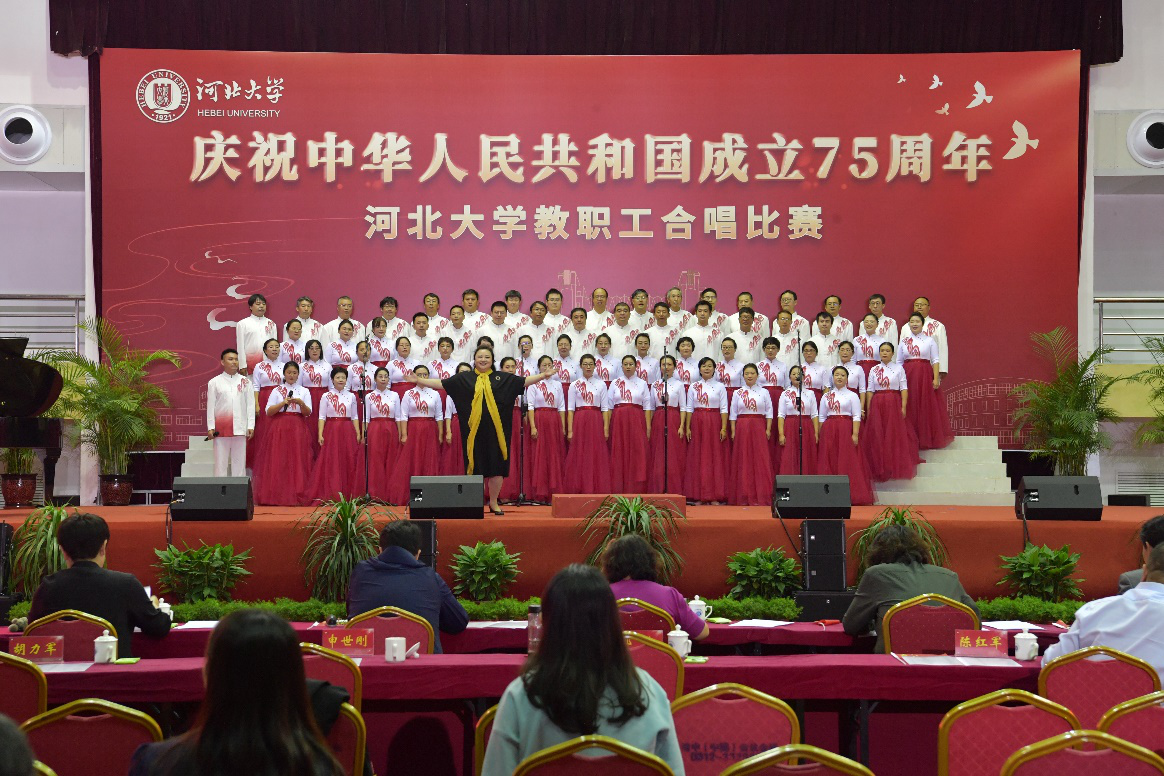 9月26日,河北大学在五四路校区多功能馆隆重举办庆祝中华人民共和国成立75周年教职工合唱比赛。在这激动人心的比赛中,数信学院的老师们凭借卓越的表现,以一首深情激昂的《江山》从众多参赛队伍中脱颖而出,荣获了二等奖的好成绩!他们用嘹亮的歌声,唱响了对祖国的深深热爱与礼赞,讴歌新中国成立75年波澜壮阔的光辉历程。